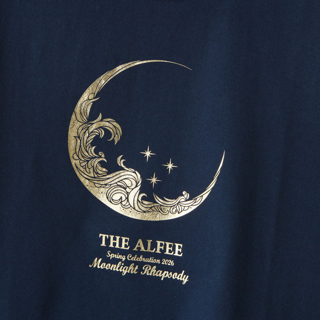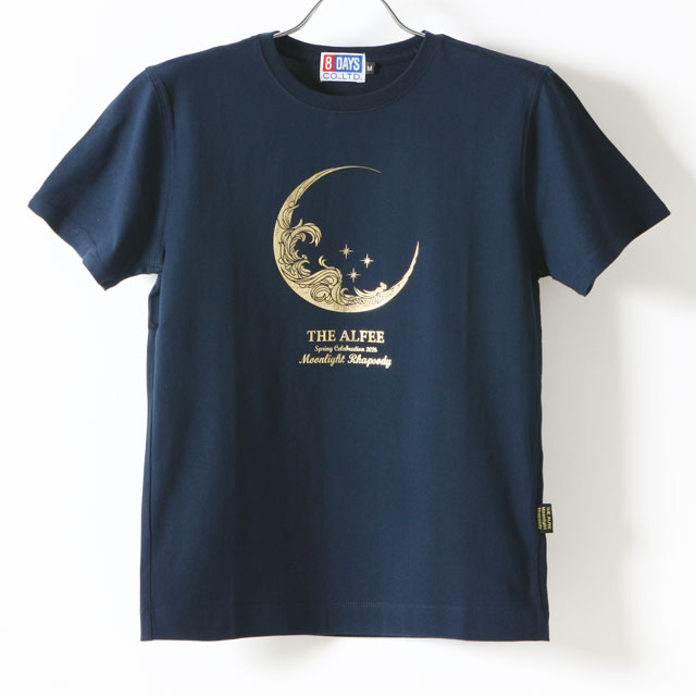 深いネイビーのボディに、ゴールドの箔で三日月の繊細なロゴをプリント。